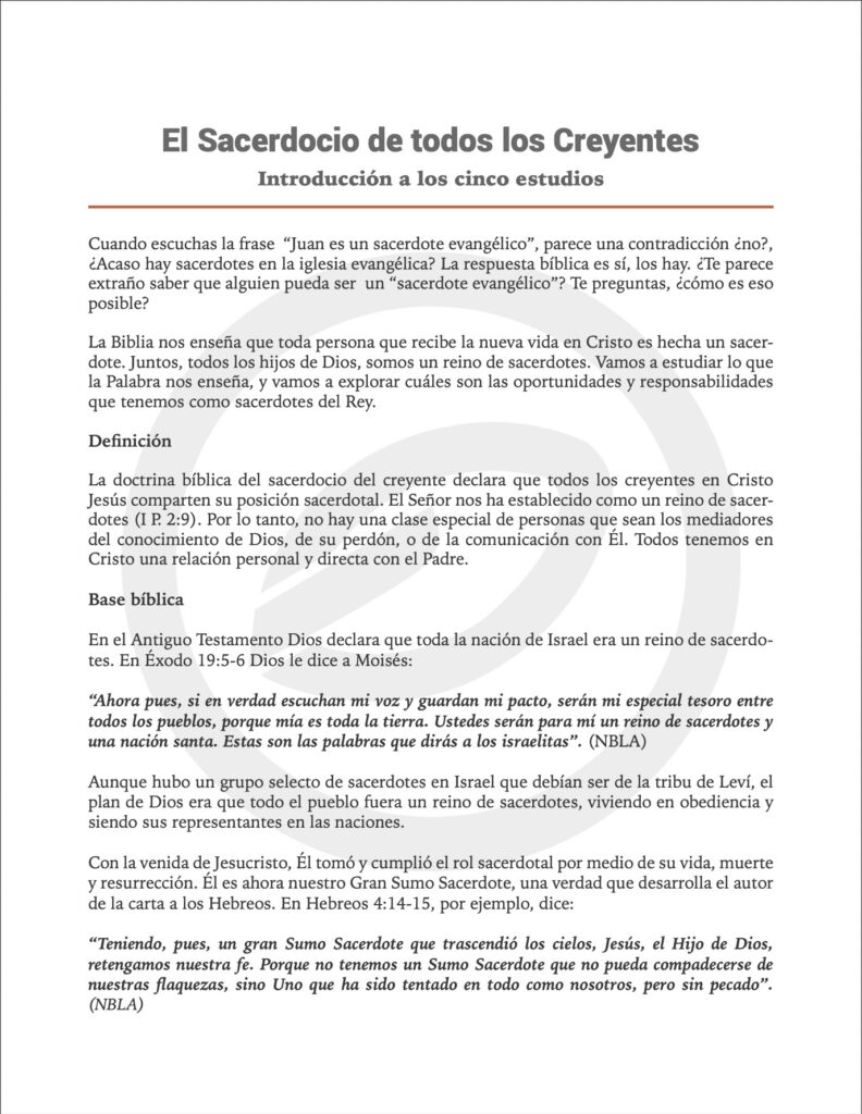 Con este recurso podrás estudiar lo que la Palabra nos enseña, y vamos a explorar cuáles son las oportunidades y responsabilidades que tenemos como sacerdotes del Rey.