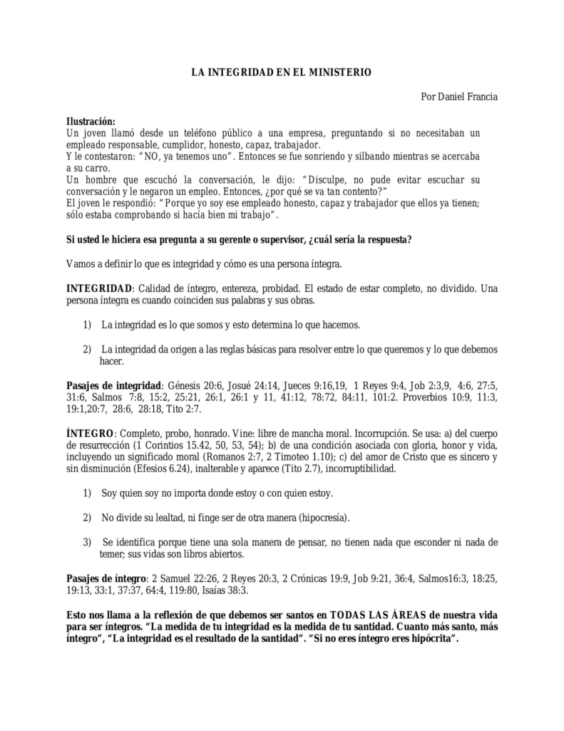 Si le dijeran, “La integridad en su trabajo de verdad no es importante”, ¿qué sería su respuesta? ¿Es importante? ¿Y qué de la integridad en el ministerio? Aquí se define lo que es integridad, cómo es una persona íntegra, y si en verdad es algo importante.