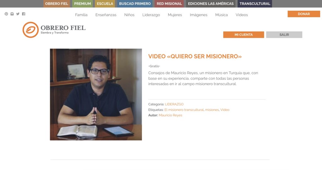 Etiquetas >> El misionero transcultural, misiones, Video